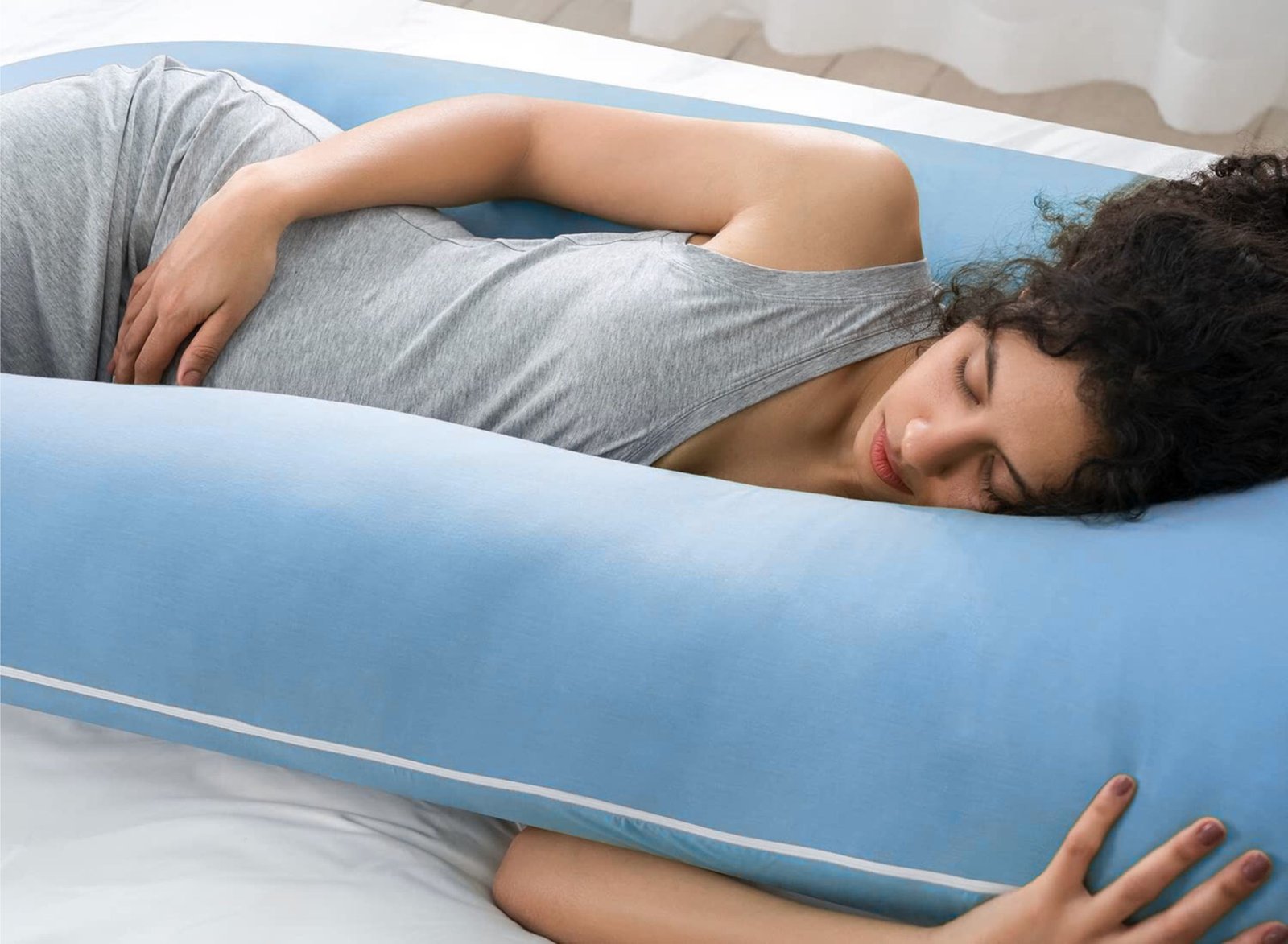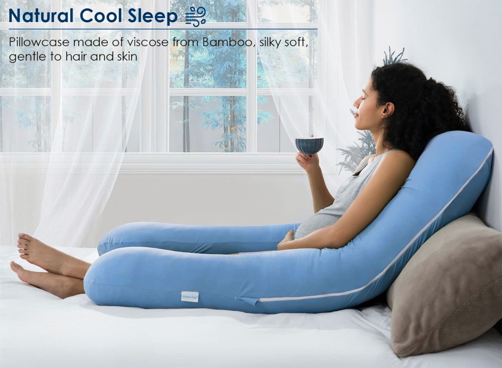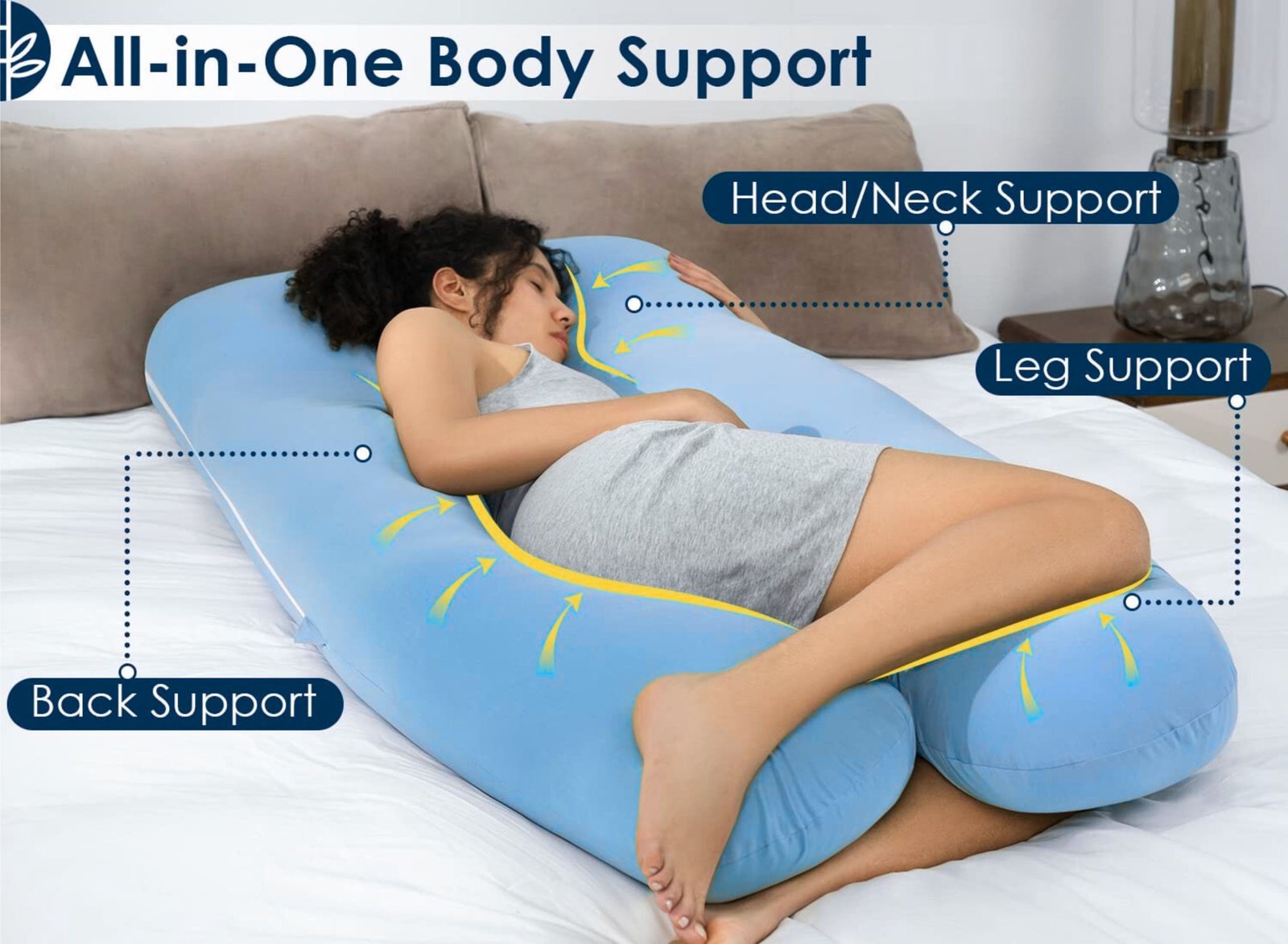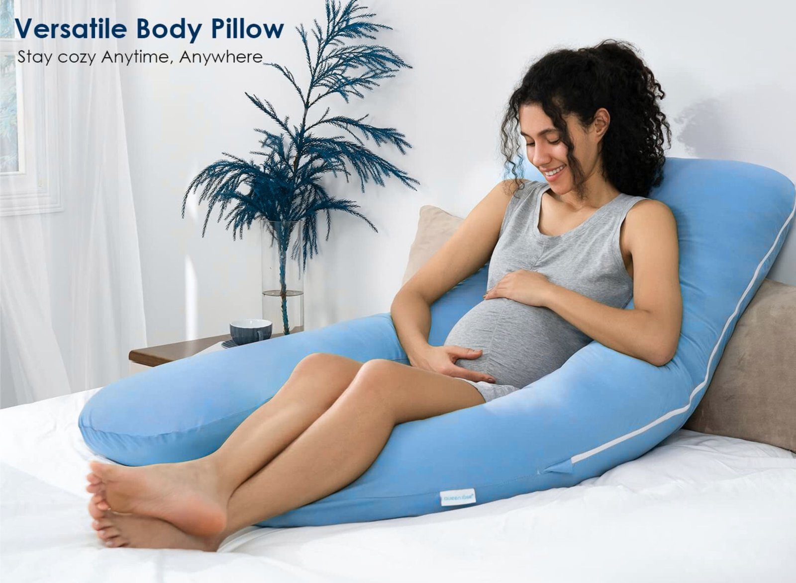 The U shape is the most comprehensive pregnancy pillow design available because it supports both sides of your body at once. The front section cradles your growing belly and reduces pressure on your abdominal muscles. Meanwhile, the back section cushions your lower spine and lumbar region, targeting one of the most common pain points during pregnancy. Additionally, the lower ends of the pillow sit comfortably between your knees, keeping your hips aligned and reducing strain on your pelvis throughout the night.